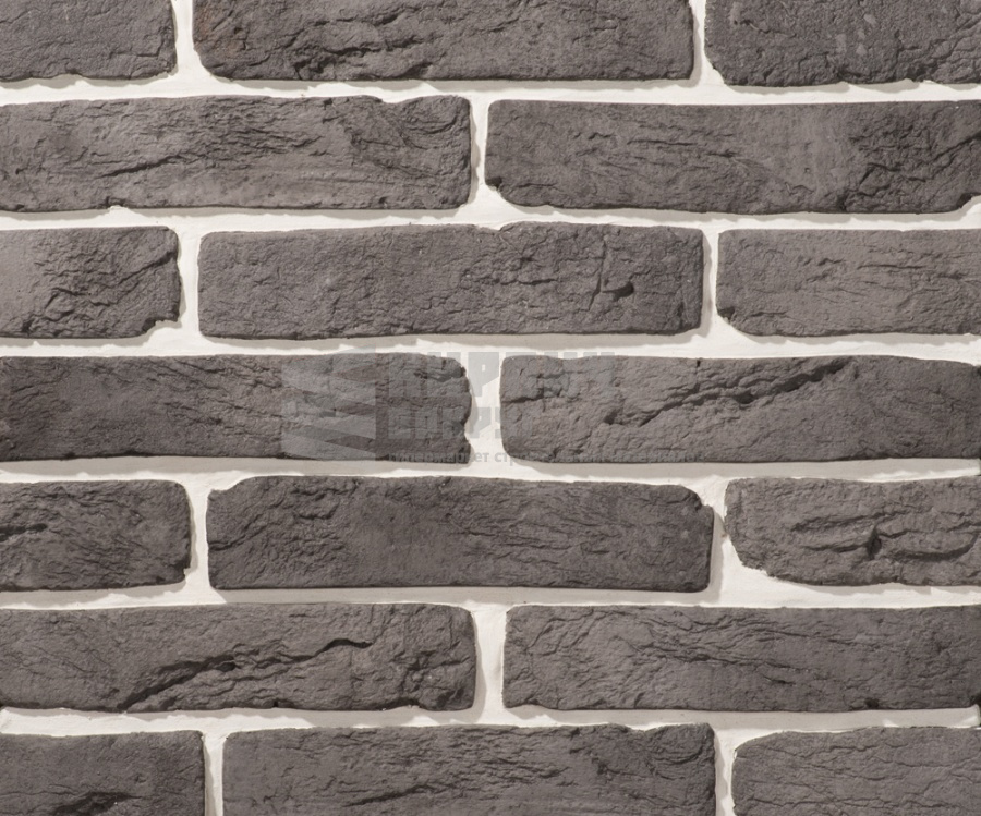 Несмотря на свой темный цвет, искусственный камень Арго 12 серый прекрасно выполняет свои декоративные функции в интерьере, на удивление привнося легкость и необычность. Имитация кирпичной кладки может быть использована как по всей поверхности стены, так и обособлена в виде отдельных элементов, украшая откосы дверей, окон, ниш в стенах.